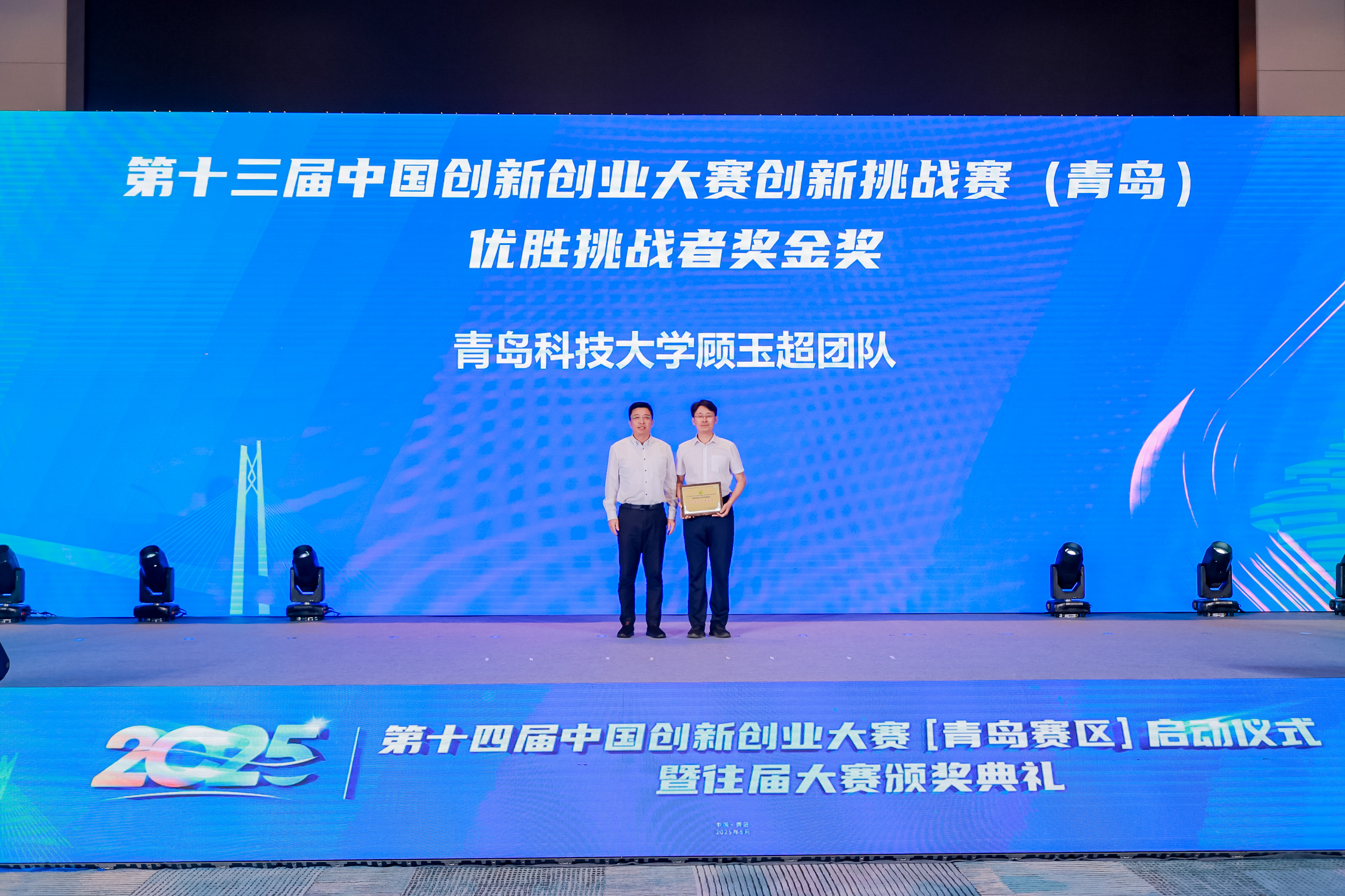 活动现场,第十四届中国创新创业大赛(青岛赛区)正式启动,并为第十三届中国创新创业大赛(青岛赛区)、创新挑战赛优秀参赛者、组织单位及合作伙伴颁奖。其中,顾玉超团队聚焦行业技术痛点,以《iPSC来源的膀胱癌双靶点纳米抗体CAR-T细胞开发》这一极具创新性的解决方案,从众多参赛项目中脱颖而出,荣获创新挑战赛“优胜挑战者金奖”。这一奖项不仅是对团队科研能力的认可,更彰显了学校在科技创新领域的强劲实力。