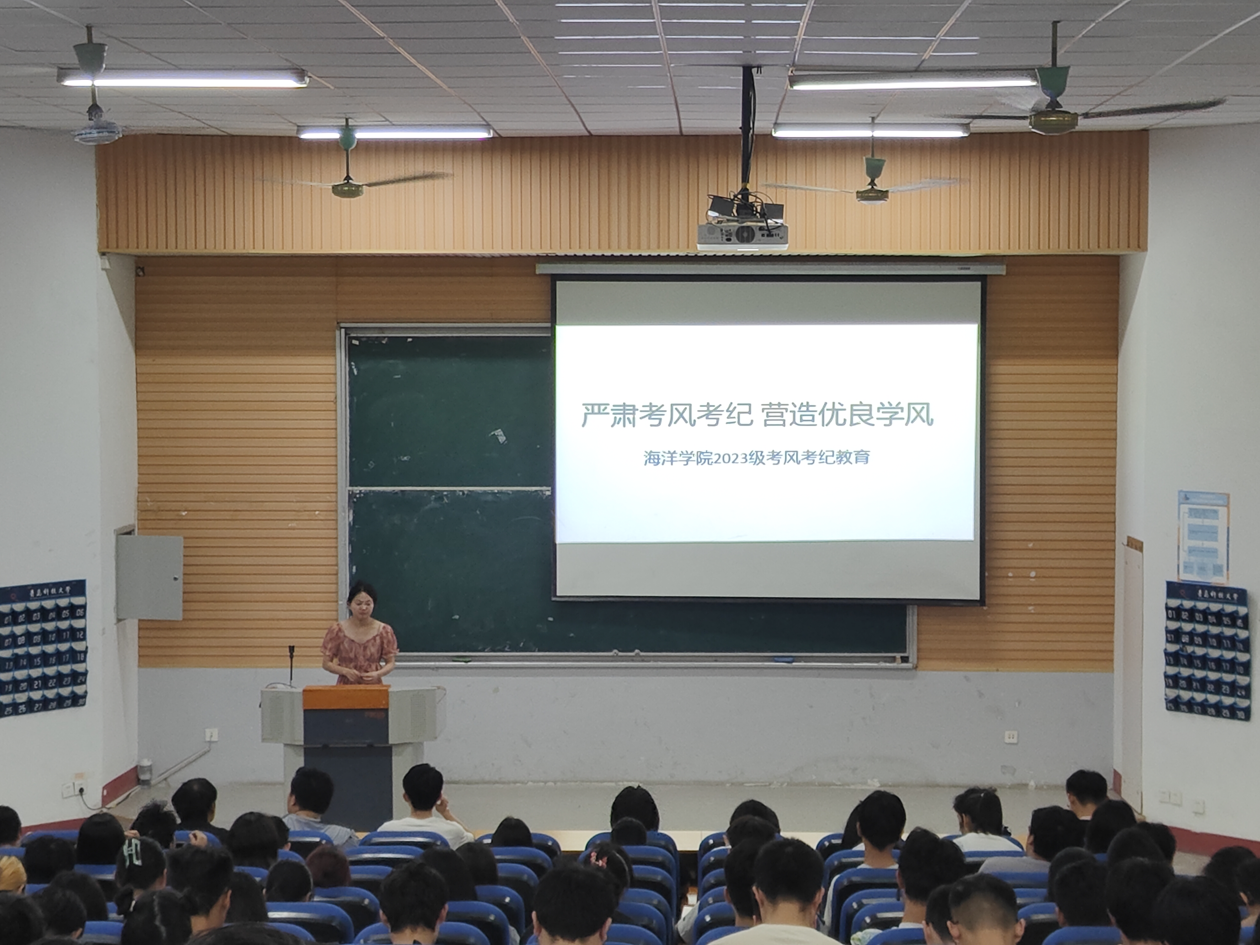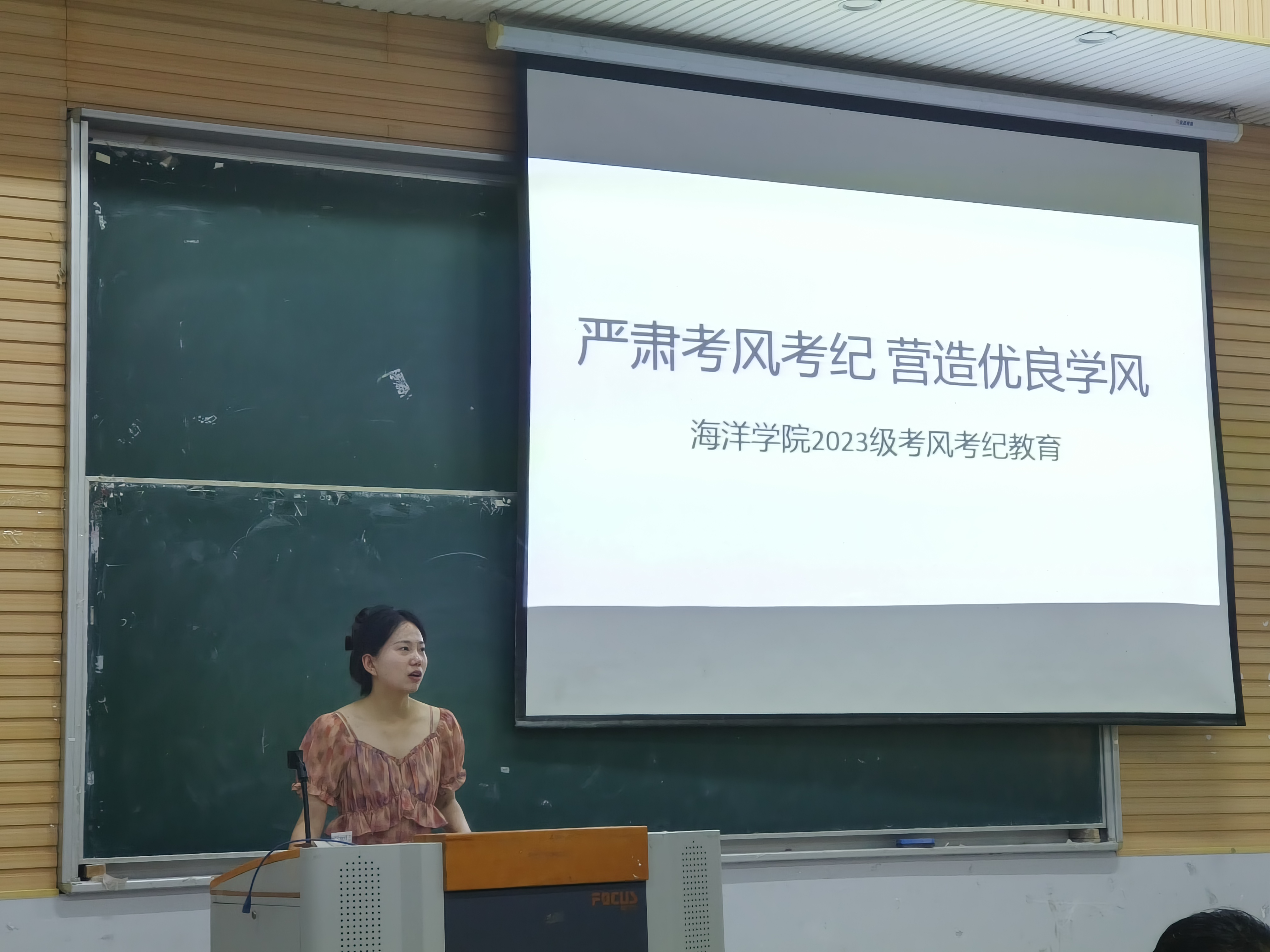 为进一步培养员工诚实守信优良品德,加强学风建设,严肃考风考纪,6月26日,海洋学院2023级开展2024年春季学期考风考纪教育大会。2023级辅导员郭颖以及2023级全体员工参加本次会议。