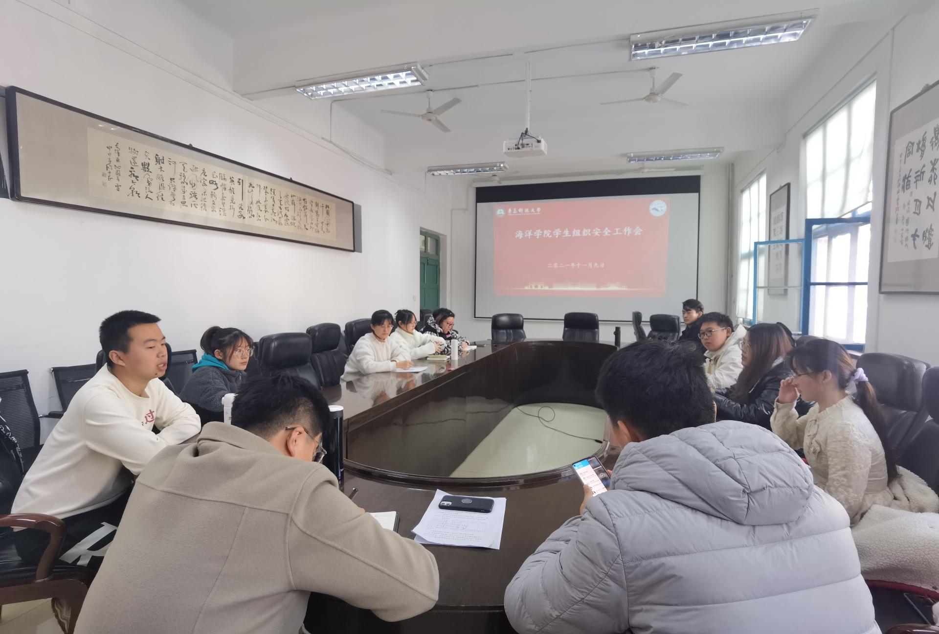 11月9日,海洋学院员工组织安全工作会在海洋学院会议室召开。海洋学院学工办主任兼团委书记、员工会指导老师李浩,第四届员工会主席团成员及各部部长参加本次会议。会议由李浩主持。