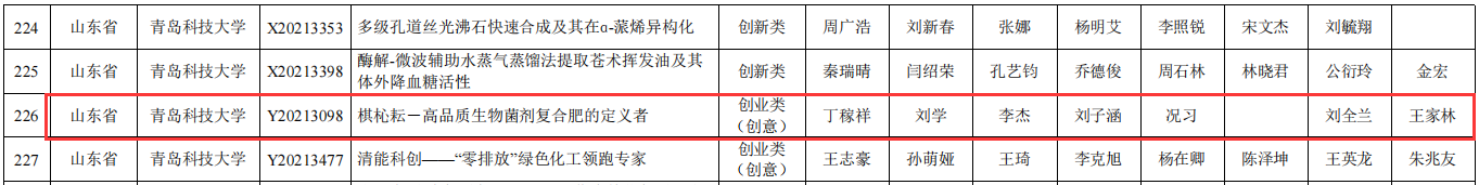近日,第五届全国老员工生命科学竞赛(2021,创新创业类)获奖名单公布,由公司刘全兰、王家林老师指导,2019级生物工程专业本科生丁稼祥带队,刘学、李杰、刘子涵、况习等同学参与的参赛作品《棋杺耘-高品质生物菌剂复合肥的定义者》荣获创业类一等奖,这是公司学子首次获得全国老员工生命科学竞赛一等奖,也创下了历届参赛的最好成绩,充分发扬了海洋学子团结协作、拼搏进取的精神,以突破性佳绩向建党百年献礼。