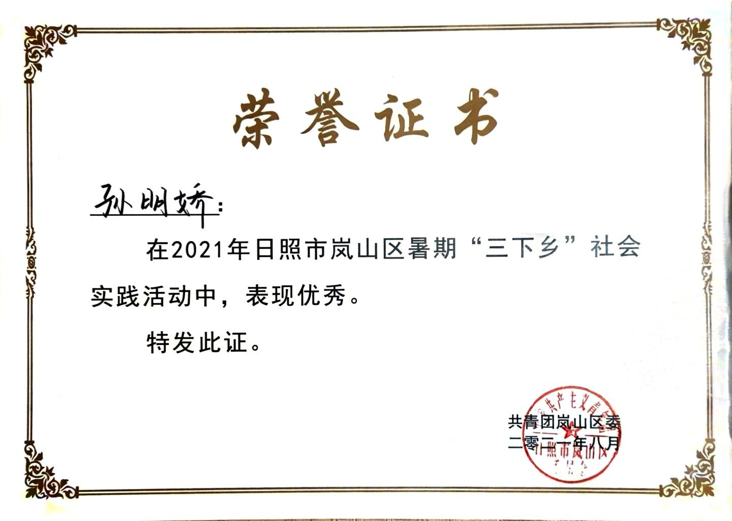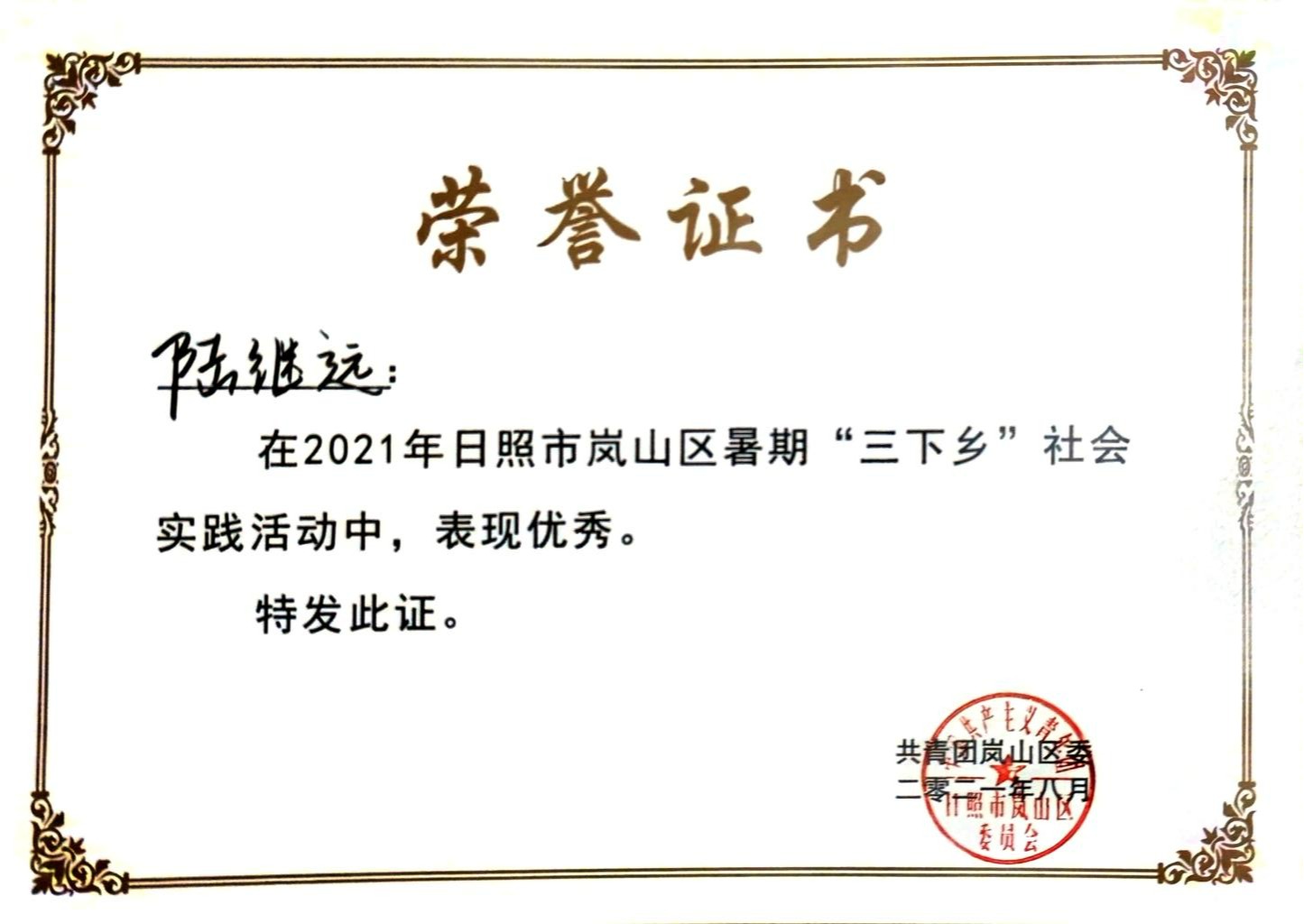 近日,日照岚山区团委向海洋学院团委发来感谢信,表达了对本次学院派出的暑期社会实践团队的感谢之情,对由陆继远、孙明娇、史翔宇、景仕参、刘秋慧5位同学组成的“心互联·新能源”志愿服务队在高兴镇向阳社区开展的“共青团小草学堂”“希望小屋”等工作表达肯定,赞扬了青科学子乐于奉献的优秀品德,感谢学院对志愿服务工作一直以来的鼓励与支持。