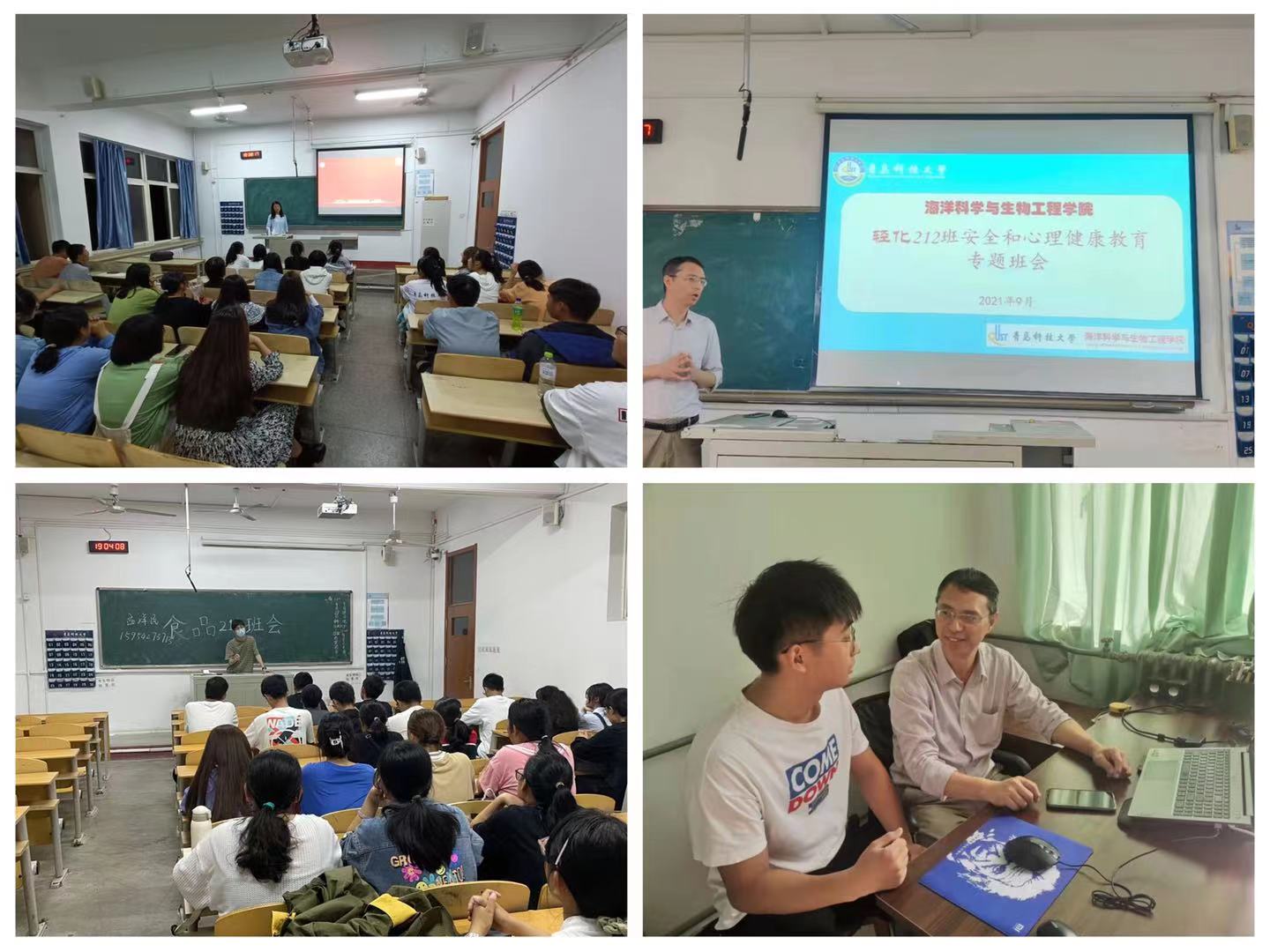 召开一次主题班会和“面对面”谈话。截止11月25日海洋学院本科和研究生的35个班级全部召开过至少一次主题班会,班会由各班班主任或辅导员主持,以加强生命安全和心理健康教育为主题,并结合各个年级的主要侧重任务,要求学院班主任每个月至少开展一次主题班会。同时,研究生导师、班主任和辅导员通过“一对一”、“一对多”等方式持续与同学进行谈心谈话,学院“一对一”谈话真正做到全员、全覆盖,深入了解同学们的学业和生活状况,及时掌握同学们的心理动态。