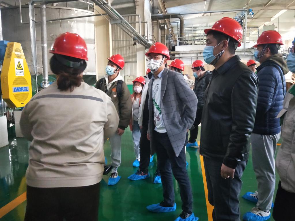 下午,人资部副部长张路带领员工进行参观。汇胜集团的生产原料均来自于生活中回收的废纸,经过碎浆、去渣等步骤得到原浆,进一步加工成纸管原纸。张路提到,目前造纸行业所产生的废水污染比较严重,但汇胜公司有健全的污水处理系统,公司的环保工作是高新区企业的标杆。
