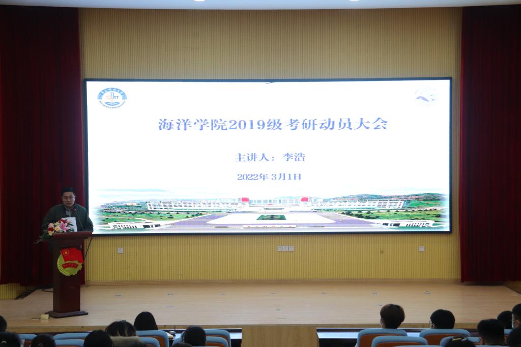 为进一步激发海洋学子的学习动力,树立正确目标,增强考研信心。海洋学院在讲学厅召开“开学第一课”暨2019级考研动员大会。大会由辅导员李浩主持,2019级全体员工参加。