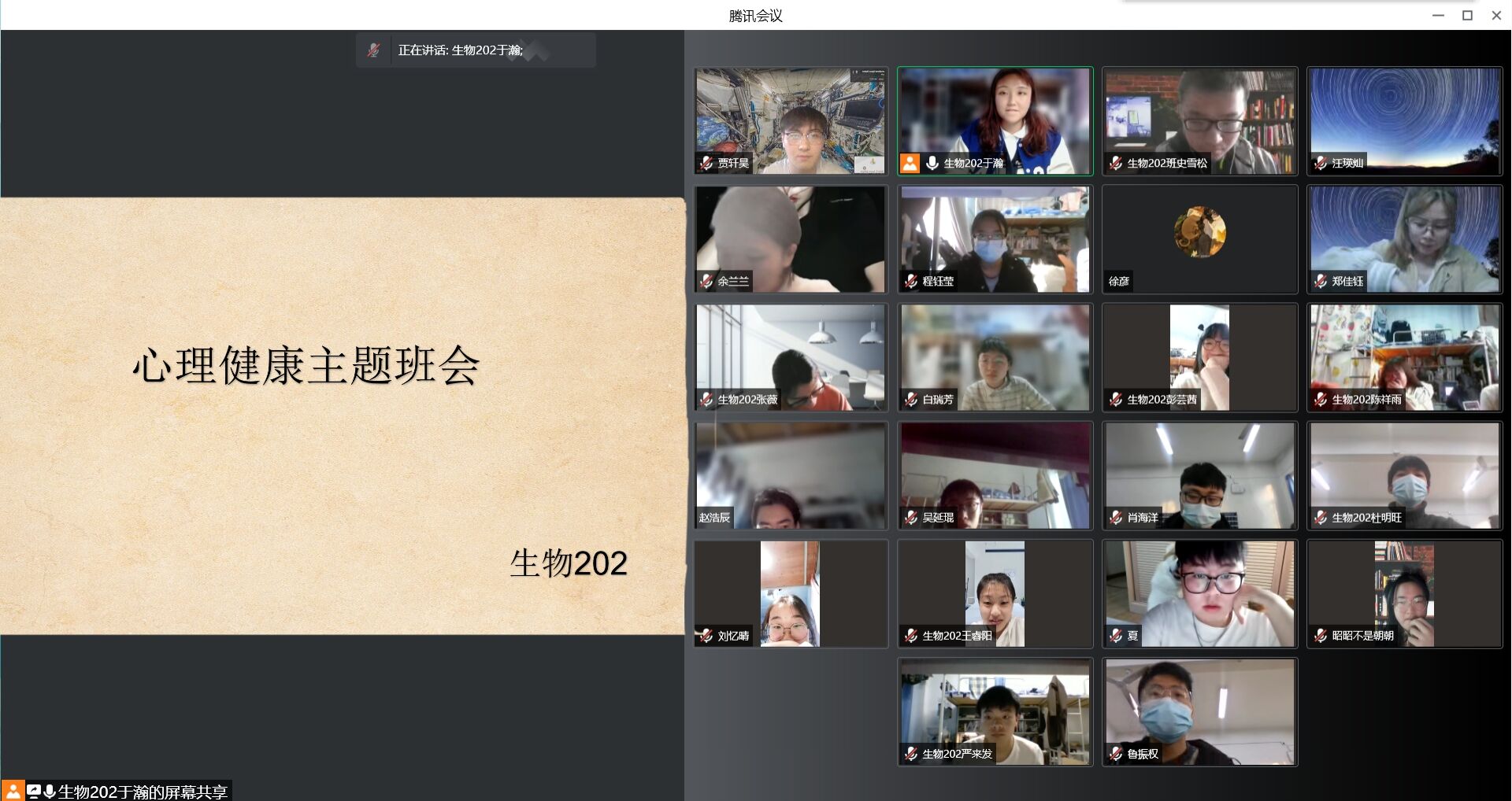 心理健康教育是以积极向上的人生观为指导,树立正确的心理发展观,良好的心理素质是人的全面素质中的重要组成部分。心理健康教育是提高当代老员工的心理素质的重要措施,是实施素质教育的重要内容。为此,生物202班开展了心理健康教育主题班会。