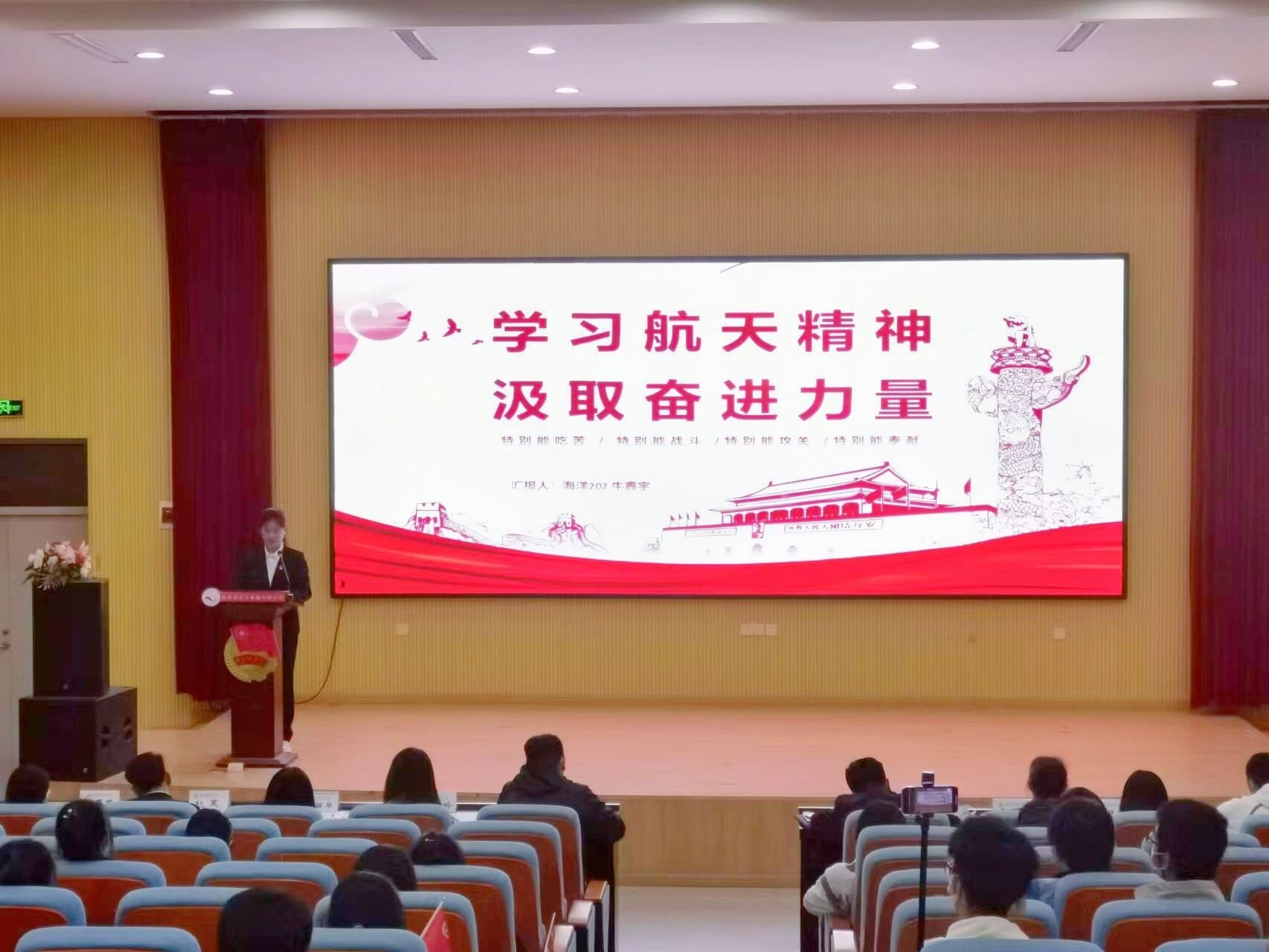 比赛在庄重的国歌声中拉开帷幕。参赛同学紧扣“喜迎二十大”这一主题,在内容上体现“微”,聚焦一个重大事件、一个伟大精神、一个伟大人物等,分别宣讲了“红船精神”“北斗精神”“载人航天精神”“抗美援朝精神”“抗疫精神”“遵义会议精神”等党的精神谱系重要内容。在形式上体现“活”,结合时代特色、青年特点,落实到青年员工思想、学习、工作实际,以价值引领为导向,弘扬正能量,传播好声音。比赛间隙,在场师生重温庆祝中国共产主义青年团成立100周年主题宣传片《共青春》主题曲《有我》,学习一代代青年先进分子在党的领导下,坚定理想信念,矢志奋斗,以青春热血铸就青春中国的光辉历程。团员青年们在最后用嘹亮的歌声合唱《共荣啊!中国共青团》彰显“请党放心,强国有我”的青春誓言,发出“清澈的爱,只为中国”的时代强音,展现“与党同心,青春建功”的青春朝气。