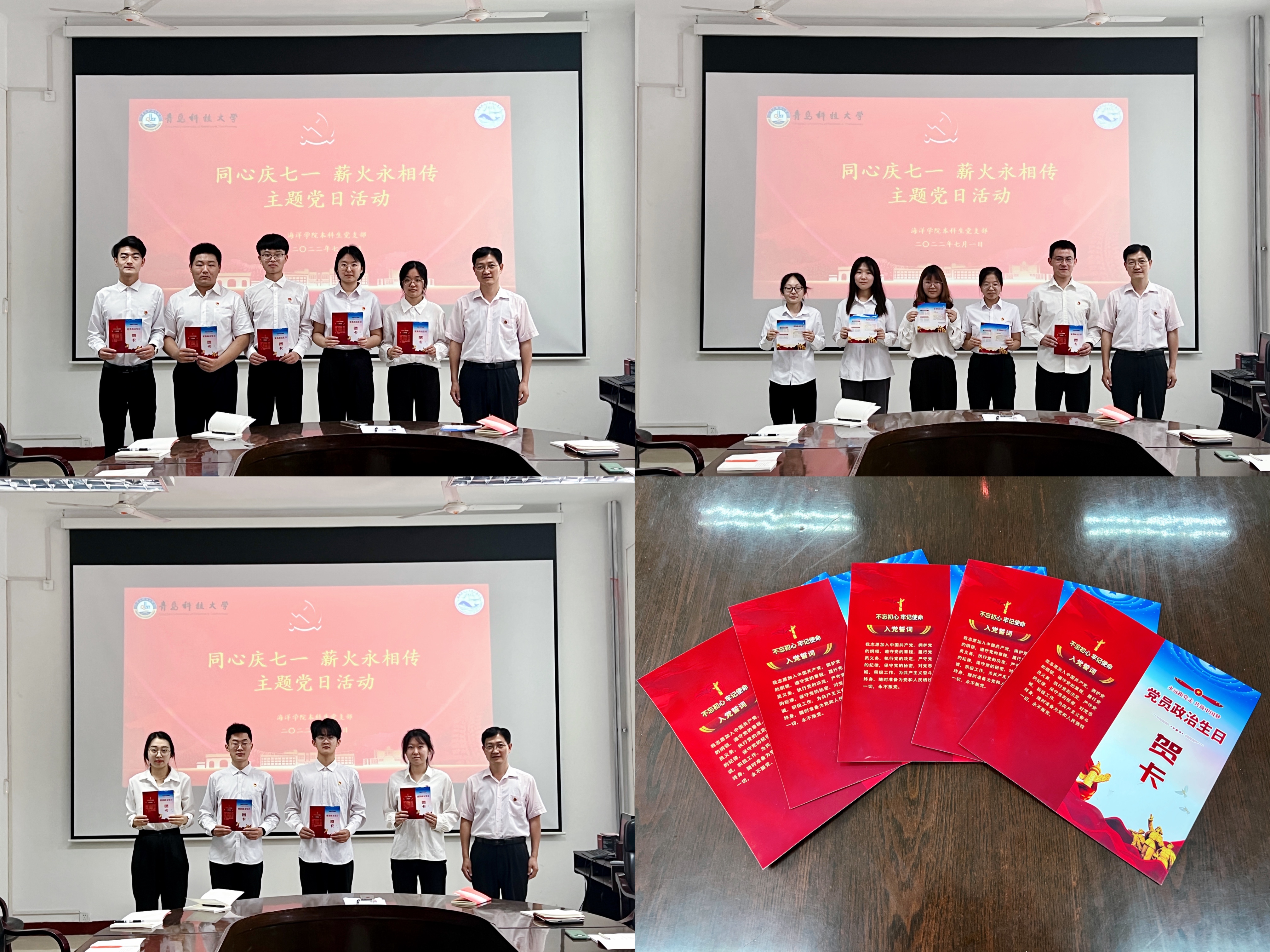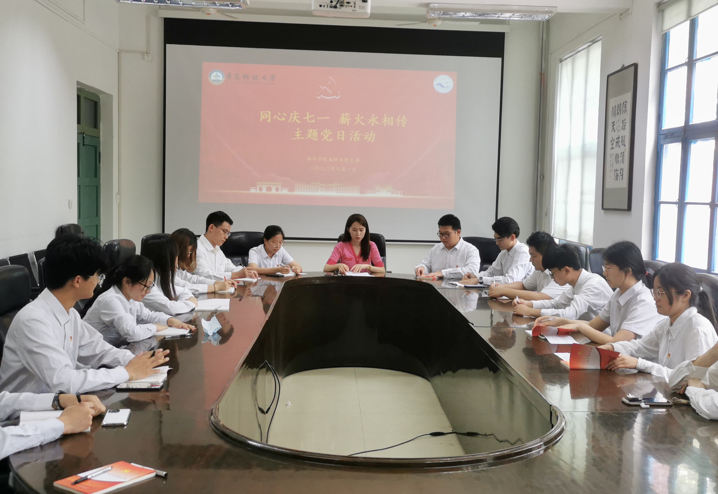 为庆祝中国共产党成立101周年,回顾党的光辉历史,继承和发扬党的优良传统,海洋学院本科生党支部于7月1日上午开展“同心庆七一 薪火永相传”主题党日活动,本次支部以“七个一”活动庆祝“七一”建党日。