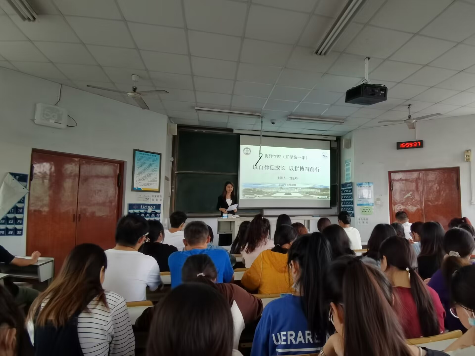 新学期伊始,为了营造良好开端,激发员工的学习热情。8月30日下午,海洋学院2020级于一教303举行了“开学第一课”。本次大会由海洋学院辅导员刘金岭担任主讲人,2020级全体本科员工参加。