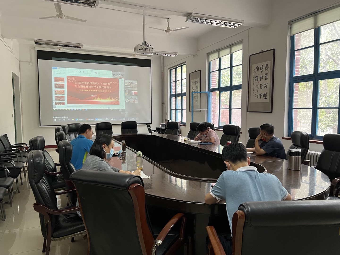 9月13日下午,公司党委理论学习中心组(扩大)学习会举行,专题学习《习近平谈治国理政》第四卷。海洋学院总支理论学习中心组在四方校区一政海洋学院会议室同步线上进行专题学习。