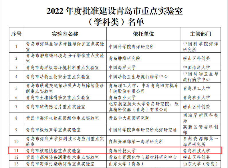 近日,青岛市科技局公布批准建设青岛市海洋生物多样性与保护等119家市重点实验室名单,海洋学院青岛市核酸快检重点实验室成功入围。